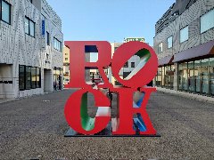勝田駅のROCKオブジェ (ロッキンジャパンのものだそうです) |
