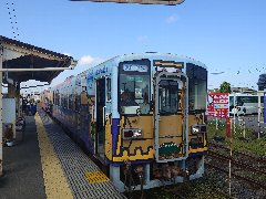 那珂湊駅に到着 (KOMATSUラッピング) |
