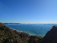 稲村ヶ崎の海岸A (稲村ヶ崎が見えます) |