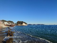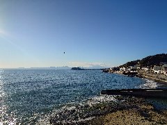 稲村ヶ崎の海岸@ (冬の海がキラキラしてます) |