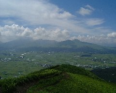 | やまなみハイウェイからの瀬の本高原 | 大観峰からの阿蘇山 (圧巻です!) |