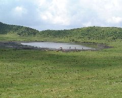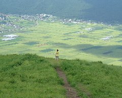 | 阿蘇の草千里 (池の周りに小さく見えるのは馬です) |