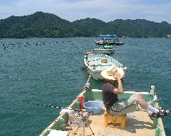 | 羊角湾の筏釣り (筏と言うより固定されたボードです) |