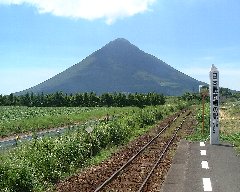 日本最南端の駅「西大島駅」 (正面には開聞岳) |