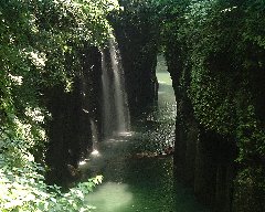 | 高千穂峡谷、真名井の滝 (かなり神秘的ですが観光客が多いです) |