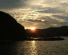 宿毛、釣り筏からの夕日 |