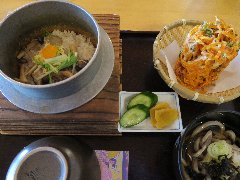 | 東京駅の「バビーズ ヤエチカ」で贅沢な朝食。高すぎるし普通・・・ | 東京駅、上越新幹線ときが入線してきました。 | 石打、「こめ太郎」の外観。 | 「こめ太郎」のランチセット、きのこ釜飯です。 |