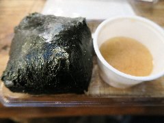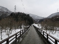 | 泊まったマンションの内風呂、温泉です。 | 泊まったマンションの半露天風呂。 | 越後湯沢、「雪ん洞」のしゃけのおにぎり、しゃけは村上産です。 | 「貝掛温泉」に続く清津川に架かる橋。 |