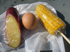 「霧島温泉市場」のさつまいも、温泉たまご、スイートコーン (素朴で美味しいです) |