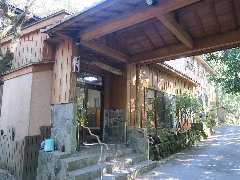 | 「霧島湯之谷温泉 湯之谷山荘」の外観 (細い車道の先にあります) |