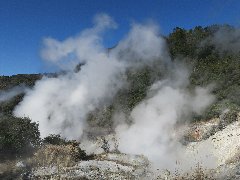 硫黄谷噴気地帯 (そこら中から湯気が出ています) |