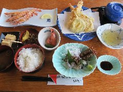 「海老の宮川 亀川店」の海老会席 (車海老のおどりなどいろいろ) |