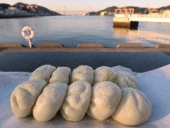 「ぶたまん桃太呂」のぶたまん (1つは小さめ、タレをつけて食べます) |