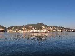 朝の長崎港の風景A (夜景で有名な稲佐山が見えます) |