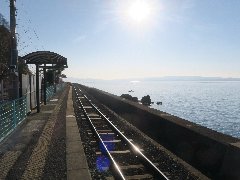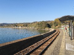 | 千綿駅の風景A (遠くから列車が来るのが見えます) |