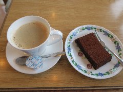 「アドニス」のコーヒーとチョコレートケーキ (窓からの景色がいいです) |