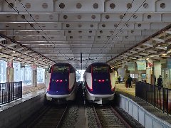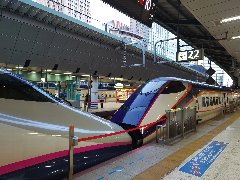 | 東京駅、東北系新幹線のホーム (新庄行きよつばさと仙台行きのやまびこが連結) |