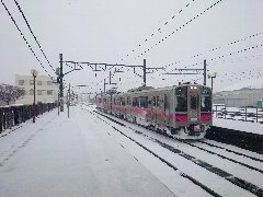 新庄駅のホームA (奥羽本線が入ってきました) |