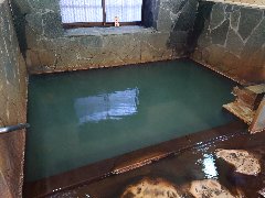 「黄金温泉 カルデラ温泉館」の露天風呂 (少し緑っぽく見えます) |