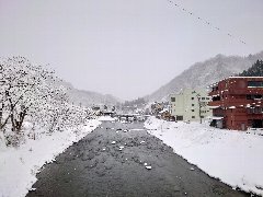 肘折温泉街を散歩A (銅山川に架かる橋より) |
