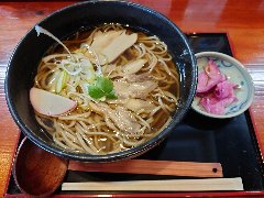 「大蔵山蕎麦ねぎぼうず」のコリコリ親鳥の肉そば(温) (温まります) |