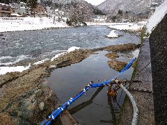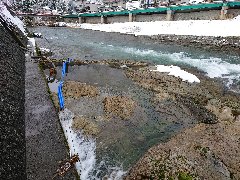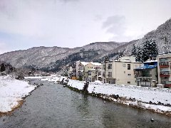 亀若大橋より (小国川、右側は瀬見温泉街です) |