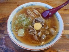 「一茶庵 支店」のもつラーメン (鳥もつこりこり、スープが美味しい) |
