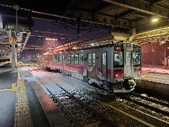 夜の新庄駅 (奥羽本線が入ってきました) |
