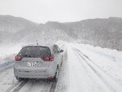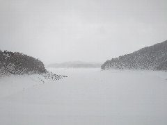 羽鳥ダムの道 (吹雪いてます) |