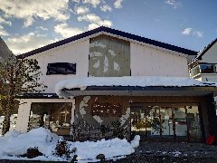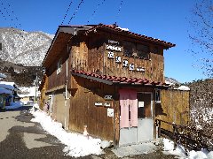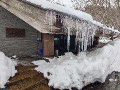 天栄村、「大丸あすなろ荘」の外観 (つららが凄いです) |