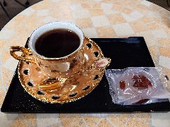 「カフェばす」のホットコーヒー (おまけのお菓子付きです) |