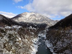 | 湯野上橋からの景色 (小野岳と阿賀川) |