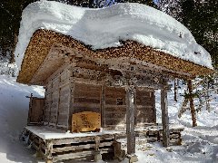 | 大内宿の正法寺子安観音堂 (木の先に見晴台) |