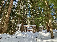 大内宿、高倉神社の二之鳥居 (神社は林の中にあります) |