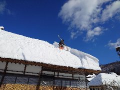 | 大内宿の風景C (茅葺屋根で雪下ろししていました) |