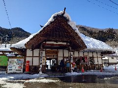 | 湯野上温泉駅の駅舎 (珍しい茅葺屋根の駅です) |