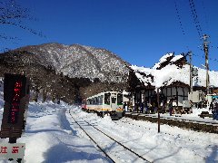 湯野上温泉駅のホームA (会津田島行が来ました) |