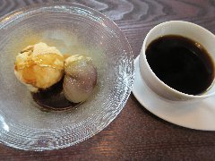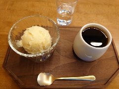 清澄白河駅から4、5分、清澄橋通りから1本路地に入ったところにあります。店内は、カウンター席が4つ、テーブルが4つ、お店の奥には茶室がありました。玄関で靴は脱いでスリッパに履き替えます。静かで落ち着いたいい雰囲気です。厨房はかなり広くてきれいでした。カウンター脇に大きな水出しコーヒーの器具が置かれています。幸菜庵ブレンド(500円)、葛まんじゅう黒蜜きな粉アイス添え(650円、セットで100円引き)を注文しました。ブレンドは、カウンターの目の前でご主人が淹れます。ペーパードリップでかなりゆっくりと淹れていました。コーノ式というらしいです。とても美味しいコーヒーです。葛まんじゅうは和服の女将さんが用意していました。中に餡子が入っていました。他には、ストレートコーヒー、水出しコーヒー、千菓子、ぜんざい、葛切り、要予約の懐石ランチなどがありました。とても丁寧な接客でした。このお店は幸菜庵という料理教室を兼ねていて、厨房が大きいのはそのためのようです。女将さんと思った方は、実は料理教室の先生でした。 |