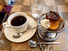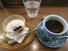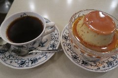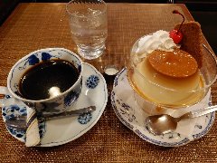 門前仲町駅から2分ほど、永代通りから路地に入った辺りにあります。ビルの1階です。赤い庇が目印です。店内は、カウンター席が3つ、テーブルが5つありました。小ぢんまりしていました。かなり渋い雰囲気、茶色っぽい壁が年季を感じます。ちょっと入り辛いけど中はアットホームな雰囲気です。プリンセット(700円)を注文しました。コーヒーはやや酸味があるタイプでした。プリンはやや硬め、卵感があって濃厚です。カラメルが苦めでいいです。手作り感ある見た目もよし。美味しかったです。他には各種ドリンク、各種トースト、ミートソース、カレーライスなどがありました。 |