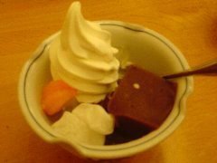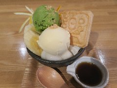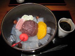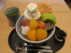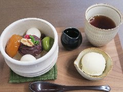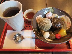 東京駅の地下街、一番街にあります。上野の本店があり、都内などに支店を持っているようです。明るい店内にはテーブルが並びます。クリームあんみつ(530円)を食べました。ソフトクリーム、みかん、寒天、ぎゅうひ、豆、餡子が入っていました。美味しいです。餡子が四角く切られてるのが特徴ありますね。それぞれ素材には拘りがあるようです。土地柄を考えても安いですね。また、男でも店に入りやすいような気がしました。 |