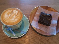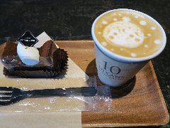 水道橋駅東口から南に3、4分、白山通りの三崎町交差点から路地に入ったところにあります。ディゾン(DIXANS)は、10周年という意味だそうです。武蔵小杉のドゥ・ボン・クーフゥというケーキ屋が、10周年を機にオープンしたお店なのだそうです。店内は、鉄のカウンター席が5つ、木のカウンター席が6つ、2人用カウンターが3つ、、8人テーブルが1つ、2人テーブルが2つありました。結構広いです。天井が高く少し薄暗く何ともお洒落です。古い建物を再利用した感じです。静かで落ち着きます。レジで注文するセルフのお店です。カフェラテとテリーヌシォコラ(セットで780円)を注文しました。カフェラテは、紙でコップで出されます。かわいいラテアートでした。テリーヌシォコラは濃厚で美味しいです。もちろんドゥ・ボン・クーフゥのケーキです。他には、エスプレッソ、抹茶ラテ、ほうじ茶ラテ、各種ケーキなどがありました。お洒落なお店の割りに安いです。 |