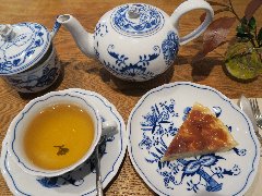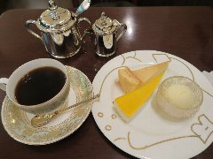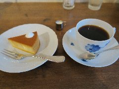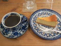 清澄白河駅から2分ほど、清洲橋通りから路地を南に進むとあります。3階建ての1階です。アプローチには庇があり暖簾が掛かっていました。店内は、カウンター席が4つ、テーブルが4つありました。小ぢんまりしています。明るくてきれい、かわいい雰囲気がありました。所々に猫グッズが飾られていました。猫の目プレンド(616円)と絹ごしチーズケーキ極み(660円)を注文しました。コーヒーは飲みやすくたっぷり入っていました。チーズケーキはとても滑らかで濃厚、コーヒーとの相性が抜群です。美味しかったです。他には、各種ドリンク、きみたちのプリン、りんごのキャラメリーゼタルトなどケーキの種類は多かったです。お客はほぼ女性でした。 |
