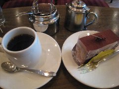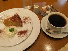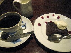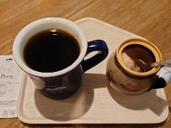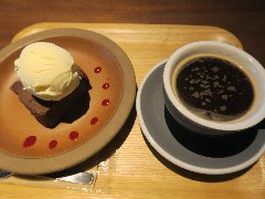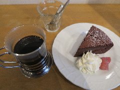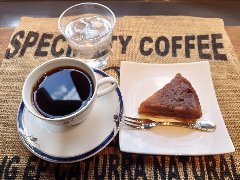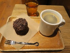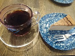 麹町駅から1分、新宿通りから路地を少し入ったところの地下にあります。店内はカウンター席が6つ、テーブル席が多数あります。太い木の梁、木の枝や古い木材を使った壁や、間接照明など、お洒落で落ち着いた雰囲気です。ノニーノブレンド(520円)とテリーヌオショコラ(450円、セットで100円引きになります)を注文しました。ブレンドは、エイジングコーヒーを使用しています。エイジングコーヒーとは、生豆熟成倉庫で数十ヶ月保存させたコーヒー豆だそうで、まろやかでコクが出るそうです。なるほど美味しかったです。テリーヌオショコラは濃厚です。スペシャリティーコーヒーもありました。朝から営業していてモーニングセットもあります。 |