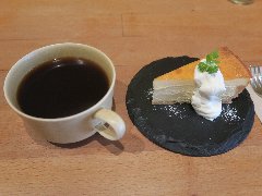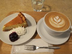 御茶ノ水駅聖橋口から5分ほど、神田明神の参道にあります。古い家をリノベーションした味のある外観です。店内は、カウンター席が4つ、壁向きのカウンター席が4つ、テーブルが3つありました。床や柱、カウンターの木材が古い感じですが、しっかりお洒落に仕上がっています。落ち着いた雰囲気です。乙ブレンド2番(550円)、チーズケーキ(380円、セットで50円引き)を注文しました。乙ブレンド2番は、中煎りでネルドリップで淹れます。酸味、コクがあり美味しいです。チーズケーキは、カラメルソースがかかり見た目はプリンみたいですが、味は濃厚なチーズケーキです。コーヒーを相性がよくてとても美味しいです。他には、各種ストレートコーヒー、各種アレンジコーヒー、各種紅茶、トーストなどがありました。 |