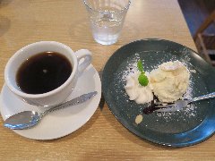 大江戸線の両国駅から3分ほど、京葉道路沿いにあります。レンガ壁のビルの1階にあります。ガラス張りで店内が見えます。店内は、カウンター席が4つ、テーブルが3つありました。明るくてきれいです。自家焙煎で豆売りもしています。メニューの説明書きを見るとコーヒーにかなり拘っているように感じます。ドリップコーヒー(400円)とチーズケーキ(400円)を注文しました。ドリップコーヒーは10種類の豆から選べます。インドネシアにしました。ハンドドリップで丁寧に淹れてくれます。美味しいコーヒーでした。チーズケーキはベイクドタイプで美味しかったです。他には、ブレンド、各種シングル、ココア、チョコレート、トーストなどがありました。 |