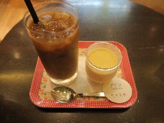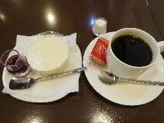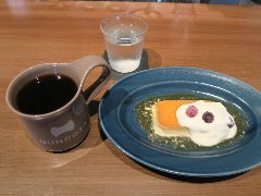 半蔵門駅から1分、新宿通り沿い、麹町1丁目交差点の近くにあります。ビルの地下1階にあります。店内は、カウンター席が3つ,テーブルが8つありました。あっさりした内装で落ち着いた雰囲気です。ヨダかとは映画に登場するヨダか珈琲というお店に由来するそうです。ヨダかブレンド(580円)、ベリーソースのこく旨パンナコッタ(550円→150円)を注文しました。コーヒーはやや苦めです。パンナコッタは濃厚で滑らか、ブルーベリーソースがよく合います。美味しかったです。実はお店のミスでランチ用の小さなサイズで提供されたようです。でも小さくてもよかったです。なので安くなりました。他には、各種ドリンク、本日のプレート、オープンサンド、トーストなどがありました。 |