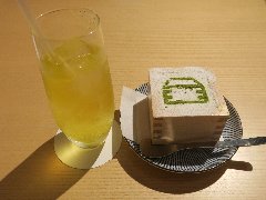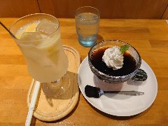東陽町駅から4、5分、永代通り沿い、東陽町駅と木場駅の間にあります。ビルの1階ですが半地下ぎみです。店内は、カウンター席が4つ,テーブルが3つありました。入口付近は狭く奥にカウンターがありました。窓は無いですが白壁で明るく、落ち着いた雰囲気です。かっこいいエスプレッソマシンが置かれていました。女性店主が1人で切り盛りしていました。レモンスカッシュ(700円)+ほろにが珈琲プリン(600円)を注文しました。レモンスカッシュは細かく刻まれたレモンの皮や果肉が底に沈んでいました。少し苦めで甘さ控えめでいいです。プリンは生クリーム添え、コーヒー風味でソースもほろ苦でした。美味しかったです。他には、各種ドリンク、樹コーヒーゼリー、ホットアップルパイ、ランチ時は食事もあるようです。 |