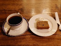 神保町駅から1、2分、靖国通りの南側にある細い路地にあります。2階建ての建物です。渋い看板、レンガ壁には蔦が這っていました。1953年の創業だそうです。店内は、テーブルが多数ありました。2つの部屋に分かれていて、部屋の中間にたくさんのレコードや音響機器は置かれた小部屋がありました。やや薄暗く木材が多く使われた内装です。タンゴが大きめで流れていました。ミロンガブレンド(650円)とアールグレイパウンドケーキ(450円)を注文しました。コーヒーは炭火焙煎、ハンドドリップで淹れるそうです。バランスよく飲みやすかったです。ケーキはちょっと小さいですが香りがよかったです、美味しかったです。他には、各種ドリンク、牛すじカレー、メキシカンジャンバラヤなどがありました。 |