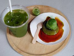御茶ノ水駅から5分ほど、神田明神の境内にある神田明神文化交流館EDOCCOの1階にあります。まだ新しい建物です。館内の1階はお土産屋とカフェ、2、3階はイベントホールなどがあります。MASUMASUは枡がイメージ、益々商売繁盛が掛かっているそうです。カフェにはテーブルが多数ありました。お店の中に木の軒があったり和のイメージです。枡パフェとアイス煎茶(ドリンクセット1274円)を注文しました。枡パフェは枡に入っていました。抹茶アイス、白玉、甘納豆、抹茶マスカルポーネ、ぶぶあられが入っていました。パフェは濃厚、煎茶はさっぱりです。美味しかったです。でもちょっと高いですね。他には、お抹茶セット、フルーツあんみつ、かき氷、うどん、定食などがありました。 |