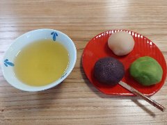 清澄白河駅から5、6分、三つ目通りの白河三丁目の交差点の近くにあります。大正6年創業の老舗の和菓子屋さんです。店内に喫茶スペースがあります。喫茶スペースには、テーブルが3つありました。壁やシートは白で統一された和モダンな雰囲気です。あんみつ(500円)、苺大福(180円)、お茶セット(200円)を注文しました。あんみつは底に黒蜜が入っていました。苺大福が美味しかったです。喫茶メニューは他に、しるこ、あべ川、いそべ巻、コーヒー、カフェラテ、クリームソーダなどがありました。和菓子は種類が多く、塩大福が名物のようでした。 |